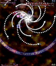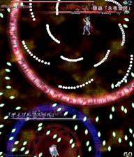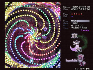 永夜抄って真正面から正攻法でガチ避けするとやたら難しいけどこーゆーパターンで避けると急激に簡単になる、あるいは安全地帯がある、という弾幕が多い。