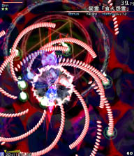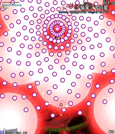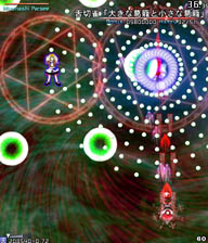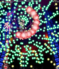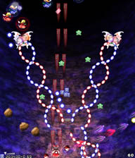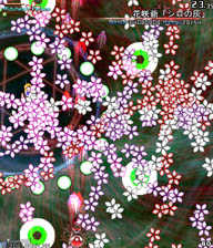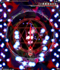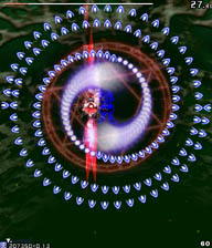 小さい弾が来る前に大きな弾(?)の隙間に入って小さな弾を横避けすればいいだけの簡単スペカなんですが。