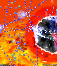 赤い弾が重なって隙間を塞ぐと怖いのでなるべく早く倒すか隙間が開いてる空間に移動しながら。