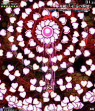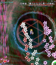 【花咲爺「華やかなる仁者への嫉妬」】、おお、米粒弾を花の形に配置。画面を飾るアイディアがいいですね。