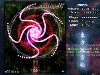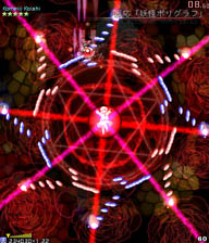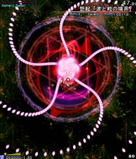 攻撃力が低くなってスペカが長引き、小粒弾に当たりそうになったので仕方なくボム。これでまた攻撃力が減る悪循環……。